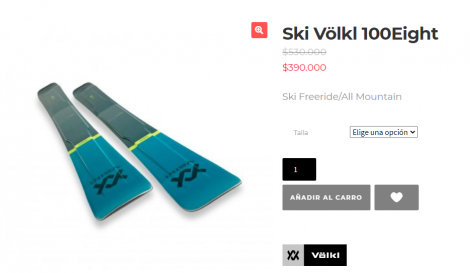 Volkl 100Eight está en versión hombre y version Woman, es un excelente ski, firme, liviano para el rando. Enfocado en el esquiador experto. Tambien su hermano el 90Eight puede ser un increible compañero en aventuras mas sureñas.