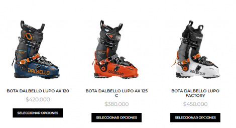En esta categoria tenemos la Dalbello Lupo, que tiene diferentes opciones en durezas (para ver el review de esta bota haz click aqui). Es realmente una bota increible usada por los mejores del mundo. LINK AL SITIO WEB DE LA BOLSA DEL SKI